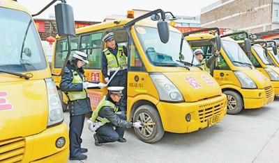 临近开学,湖南省邵阳市洞口县相关部门人员到各学校、幼儿园,对校车等进行检查,强化校车安全管理,从源头排除安全隐患。图为2月10日,交警在洞口县高沙镇一所幼儿园检查校车车况。