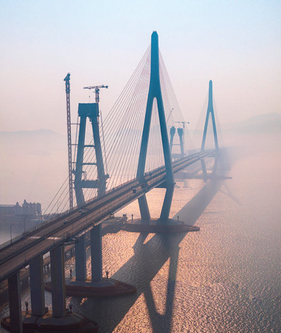 浙江宁波市,象山港跨海大桥在加紧建设。