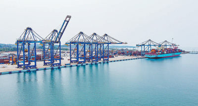 近日,由中国港湾工程有限责任公司承建的喀麦隆克里比深水港二期工程正式交付喀方。该工程于2019年12月开工,包括两个分别为7万吨级和10万吨级的集装箱码头及相关配套设施。据介绍,克里比深水港在推动地区经济发展方面发挥着重要作用,二期工程竣工是满足日益增长的贸易需求、提高克里比深水港吞吐能力的重要一步。图为近日拍摄的克里比深水港(无人机照片)。