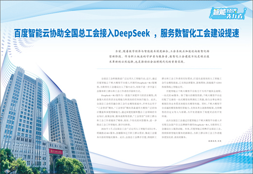 此次全国总工会通过百度智能云千帆大模型平台接入并实现完全国产自主品牌硬件调用DeepSeek—R1,为数智化工会建设注入强劲动能。未来,百度智能云将携手全国总工会,持续探索智能化服务的新路径,为职工群众和工会工作者提供更加优质、高效的服务。
