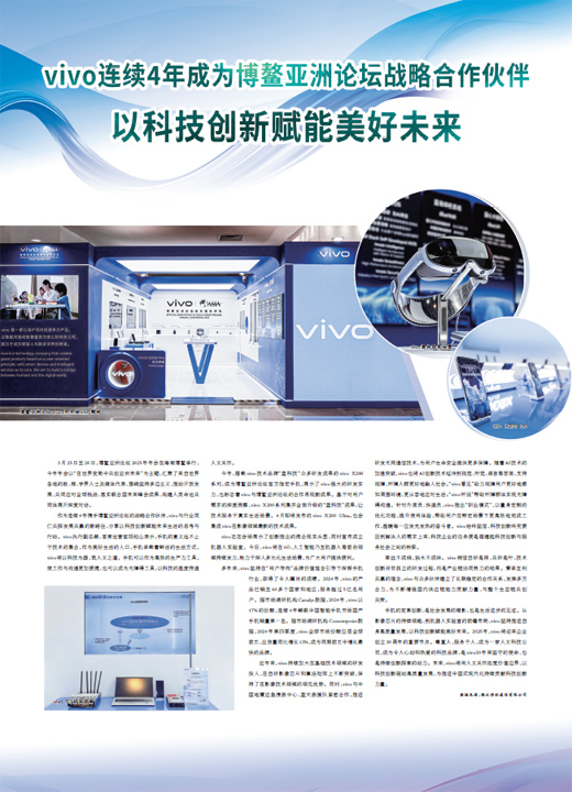 作为连续4年携手博鳌亚洲论坛的战略合作伙伴,vivo与行业同仁共探发展共赢的新路径,分享以科技创新赋能未来生活的思考与行动。vivo执行副总裁、首席运营官胡柏山表示,手机的意义远不止于技术的集合,作为美好生活的入口,手机承载着鲜活的生活方式,vivo将以科技为器,筑人文之道。手机可以作为高效的生产力工具,使工作与沟通更加便捷,也可以成为无障碍工具,以科技的温度传递人文关怀。