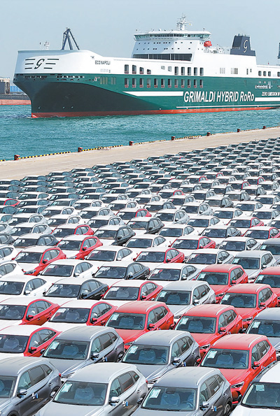 山东港口烟台港,一辆辆汽车正等待装运出口。