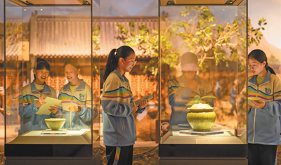 甘肃省张掖市博物馆发挥自身馆藏优势,结合课本和文物保护知识,打造“文化+教育+旅游”研学品牌。通过做一回“小小考古家”、修复一件出土“文物”等活动,青少年与历史“对话”,增强文化自信。图为4月9日,青少年在甘肃省张掖市博物馆参观学习。