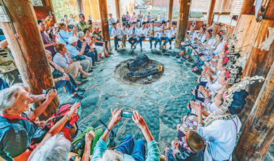 图为4月19日,黔东南州黎平县双江镇黄岗村村民为中外游客表演侗族大歌。