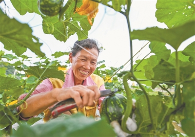 近日,湖南永州市道县蔬菜基地的头茬南瓜迎来采摘季。