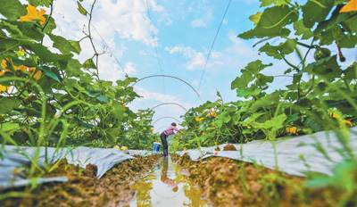 5月5日,农民在蔬菜基地劳作。