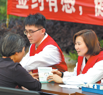 5月19日,山东省临沂市郯城县郯城街道卫生院组织家庭医生进社区活动。医生们来到郯城街道府东社区为居民介绍家庭医生签约情况,并进行健康体检。