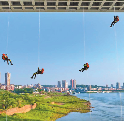 日前,四川省泸州市消防救援支队在长江泸州纳溪段开展水域救援专业训练。