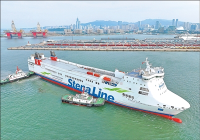 6月5日,由招商局金陵船舶(威海)有限公司为瑞典改造的滚装船“Stena Foreteller”号从船厂驶抵山东港口烟台港装车,正式投入运营。该船在中国通过加装货运甲板、提高推进器性能和配备岸电系统等改造,提升30%的运载能力,并减少温室气体排放。