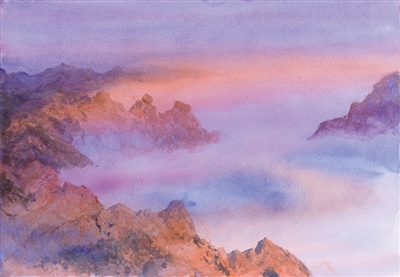 水彩画《崂顶晨光》,作者陈坚。
