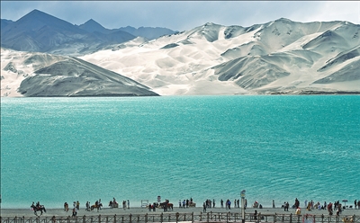 6月9日,新疆克孜勒苏柯尔克孜自治州阿克陶县,游客在白沙湖景区观光游玩。