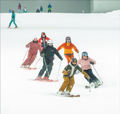 6月13日,河北省石家庄市正定县,滑雪爱好者在室内滑雪场滑雪。近年来,正定县多措并举加快建设群众身边的冰雪运动场地设施,推动冰雪运动发展。