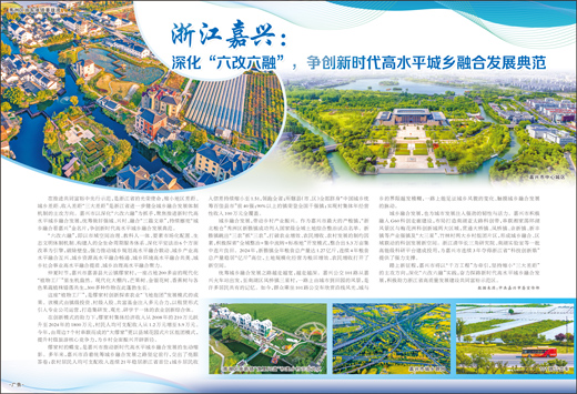在推进共同富裕中先行示范,是浙江省的光荣使命,缩小地区差距、城乡差距、收入差距“三大差距”是浙江省进一步健全城乡融合发展体制机制的主攻方向。嘉兴市以深化“六改六融”为抓手,聚焦推进新时代高水平城乡融合发展,统筹做好强城、兴村、融合“三篇文章”,持续擦亮“城乡融合看嘉兴”金名片,争创新时代高水平城乡融合发展典范。