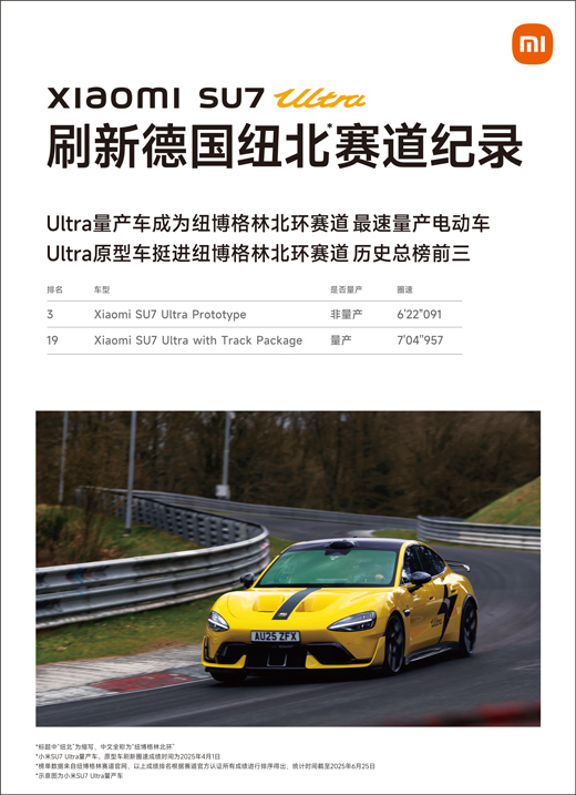 *小米SU7 Ultra量产车、原型车刷新圈速成绩时间为2025年4月1日