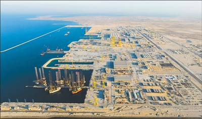 图为沙特萨勒曼国王国际综合港务设施项目航拍。