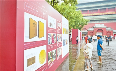 7月27日,“北京中轴线申遗成功一周年主会场活动”在北京钟鼓楼广场举行。活动发布了《北京中轴线保护传承三年行动计划(2025年—2027年)》等,展现申遗成功一年来,北京中轴线整体性和系统性保护、文化遗产传承利用、国际交流合作等方面的一系列成果。图为当日,人们在钟鼓楼广场观看成果展板。