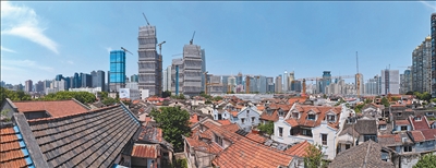 近日,上海市区零星旧里改造更新陆续完成,老城厢里“长”出的新房子,正以不断提升的住房质量和陆续完备的配套设施,改善上海城市面貌,创造更加舒适的宜居宜业环境。图为从一片待改造的老房子远眺上海黄浦区旧城区改造项目建设中的楼房。