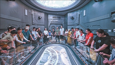 图为10月7日,游客在文昌航天科普中心参观。