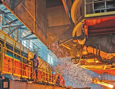 10月9日,位于安徽省马鞍山市的中国宝武马钢特钢公司,工人正在进行钢水浇注作业。目前,企业在为完成四季度目标全力生产。