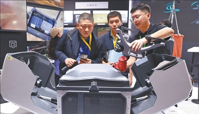 10月13日至16日,由中国消防协会主办的第二十一届中国国际消防设备技术交流展览会在北京中国国际展览中心(顺义馆)举行。本届展览会主题为“科技赋能实战,助力产业发展,服务消防救援”,来自40多个国家和地区的1200余家单位参展。图为10月14日,工作人员(右一)在展览会上介绍自动化的无人值守巡检平台。