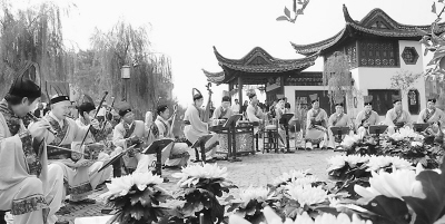 这是国家级非物质文化遗产《十番锣鼓》上演时的一幕,类似的文化遗产在江苏淮安河下古镇还有很多。