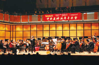 当地时间1月4日晚,以中国已故指挥家李德伦的名字命名的李德伦基金会在多伦多举行中西荟萃新年音乐会。主办方邀请中国国家交响乐团一级指挥徐东晓越洋前来执棒指挥。徐东晓(执长号者)是李德伦的关门弟子。