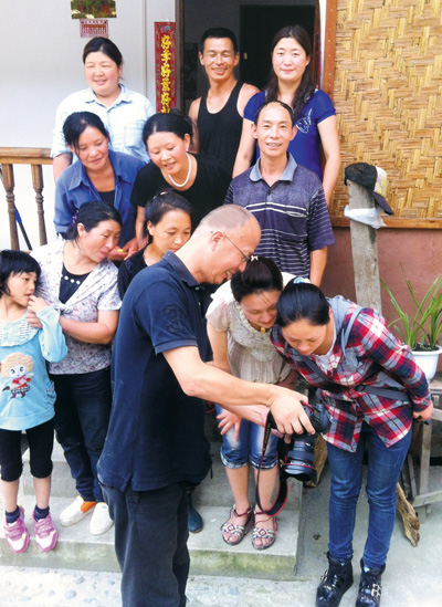 来自怒江州首府六库的志愿者和志斌第一次参与全家福项目,手握相机难免有些紧张。他和同伴们想逗大家笑,效果并不理想。直到把拍好的照片拿给大家看,这一家人才集体露出了笑容。