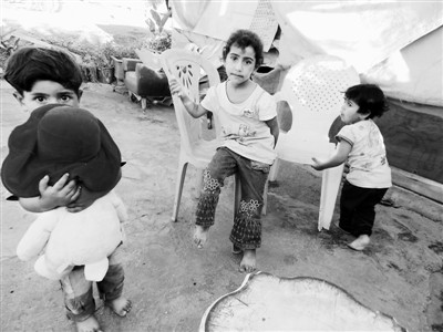 8月21日,在该难民营,几名儿童在玩耍。