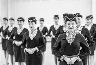 11月10日,正在新疆乌鲁木齐客运段紧张训练的“动姐”们首次向媒体露面。乌鲁木齐客运段动车队成立于2014年7月1日,队员由汉、维吾尔、回、满和朝鲜等多民族组成,平均年龄23岁,致力于为旅客营造“甜蜜新丝路、瞬间新感受”的乘车体验,打造丝路上的“甜蜜高铁”。兰新高铁(乌鲁木齐南至哈密段)将于11月16日开通运营,标志着新疆正式进入高铁时代。动车开通后初期运行时速200公里,乌鲁木齐南到哈密的运行时间由原来的5小时缩短至3小时左右。图为“动姐”在进行形体训练。