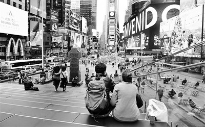 图为11月19日游客在纽约时报广场观光。
