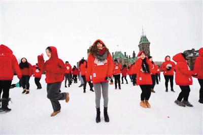 据了解,加拿大是最早推行多元文化主义政策的发达国家,因其对不同文化、不同民族、不同宗教信仰的包容性而备受称赞,伴随中加交流日益频繁,中华文化已然成为加拿大多元文化的重要组成部分。此次的快闪活动也印证了这一事实。当天,在迎风飞舞的冬雪中可以看到,参加活动的人群既有来自渥太华及多伦多等地的华侨华人及中外留学生,也有来自其他族裔的加拿大居民甚至原住民。当原创歌曲《你好孔子》响起时,大型的Q版孔子人偶与上百位年轻人的载歌载舞。此外,总共演唱的6首歌曲则融合中西各种风格联袂呈现,深刻地展现了中华文化如何真正地“走向世界”。
