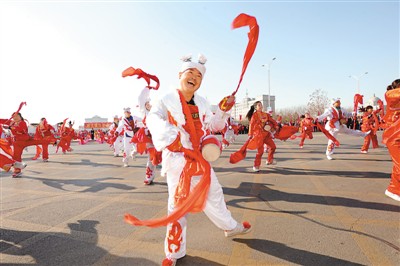 2月6日腊月二十八,宁夏回族自治区石嘴山市平罗县迎新春社火展演拉开帷幕,13个乡镇的2000多名社火队员分别表演威风锣鼓、扭秧歌、抬花轿、踩高跷、跑旱船等数十项节目,上万名父老乡亲在喜庆的氛围中感受到浓浓年味。