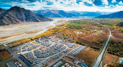 图为西藏拉萨易地扶贫搬迁新村三有村全貌。