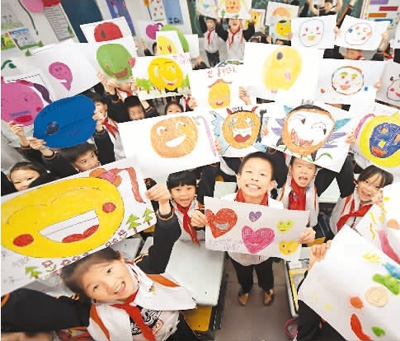 5月8日是“世界微笑日”,江西省新余市五一路小学开展“微笑日·展微笑”主题活动,通过制作微笑脸谱、画笑脸、比笑脸等形式,引导学生们用甜蜜、灿烂、阳光的“微笑表情”面对每一天的学习和生活。图为学生在展示自己绘制的笑脸。