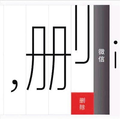 关注的网友普遍比较喜欢“删、伞、鼻”这3个字。删是动词,虽然人们都会删除文件,但很难用一个具象的物体或是动作来概括这个字。叶天宇想到了现在拥有手机的人几乎都在使用微信,而微信中就有一个横滑删除微信聊天框的动作。于是,出现了这个动态的“删”字,叶天宇将“删”字分成3部分,变成3个聊天框,挨个删除,再加以循环。“至于‘伞’和‘鼻’字不必多说,‘伞’字象形对称,而‘鼻’字下的那两条鼻涕让人联想到自己流鼻涕的经历不免会心一笑。”叶天宇说。