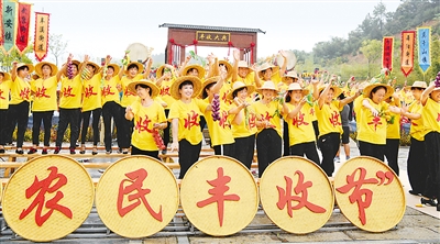 9月17日,浙江省湖州市德清县阜溪街道郭肇村1000余名农民敲锣打鼓,载歌载舞,喜迎首个“中国农民丰收节”的到来。当天,德清县举行一年一度的“敬农节”活动,当地农民参与了丰收集市、民俗表演、技能比赛、体育赛事、农事体验等庆祝活动,以庆丰收的方式感恩自然的赐予、土地的供给和农民的辛勤。