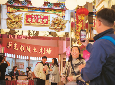 香港新光戏院近日举办开放日,开放戏院大堂、数码戏院、怀旧展览、大剧院舞台等区域让公众参观。香港新光戏院在1972年开幕,一直是香港文化艺术重要地标之一,见证众多经典电影上映和精彩演出的举办。图为参观者在新光戏院大堂拍照留念。