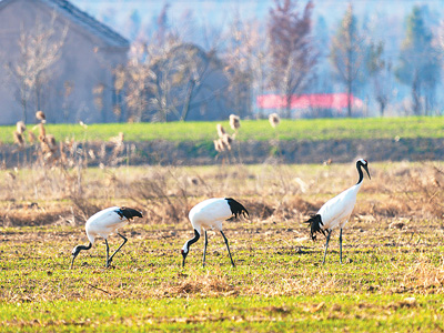 黄尖镇地处世界自然遗产中国黄(渤)海候鸟栖息地的核心区,是东亚—澳大利西亚候鸟迁徙路线上的重要中转站。这里自然资源丰富,每年到这里越冬的野生丹顶鹤达千余只,占全球数量的六成以上。