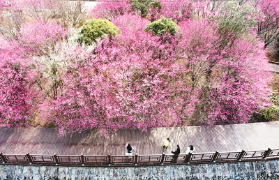 2月9日,贵州省黔东南苗族侗族自治州施秉县河滨公园梅花竞相绽放,风景宜人。