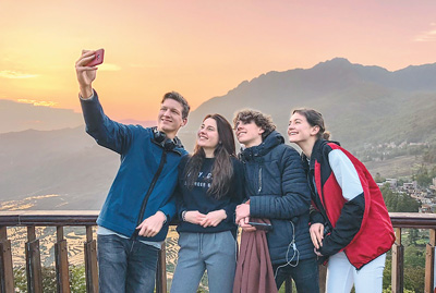 待太阳彻底高悬,我带着满心的眷恋缓缓踏上归途。沿着蜿蜒的山路下行,回首望去,多依树梯田在日光下闪耀着金色的光芒,云海依旧悠悠地萦绕在山腰……