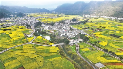 2月19日,贵州省黔西南布依族苗族自治州兴义市万峰林春意盎然,千亩油菜花竞相绽放。