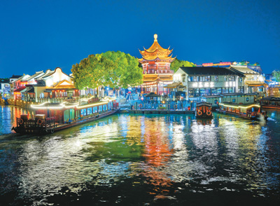京杭运河苏州段七里山塘,凭借独特的地理位置、悠久的历史背景、古色古香的建筑和丰富的文化活动,成为众多游客心中的网红打卡地。近年来,在古运河夜游热潮的推动下,沿河而建的餐馆、茶馆、评弹昆曲馆等休闲娱乐场所生意红火,为当地经济发展注入新活力。图为七里山塘夜景。