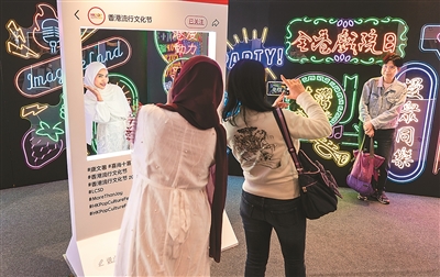 “香港流行文化节2025”近日在香港文化中心开幕。图为香港文化中心内的主题展示吸引市民游客驻足参观、拍照。