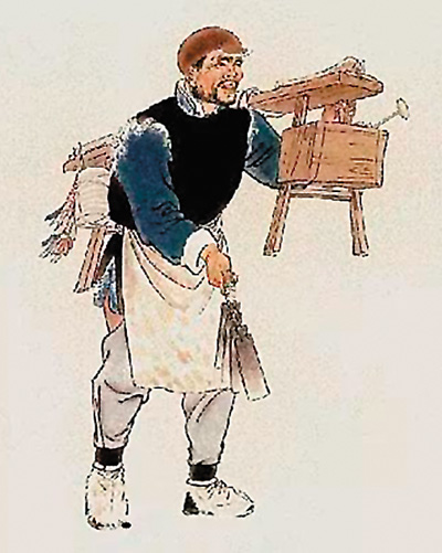 这几年随着北京城市建设的变化,走街串巷的磨刀人少见了,倒是在社区经常举行不定期的“磨剪子戗菜刀”义务服务,这当然是一件非常好的事情,可我仍然希望自己家的钝菜刀被人认真地磨戗。终于有一天,我听见了一声吆喝:“磨剪子来戗菜刀——”但这吆喝明显是电喇叭声里的吆喝,没有什么激情。隔着小区的栅栏,我看见了一个磨刀人,于是我兴冲冲地把钝了的两把菜刀拎出去,包括双立人的德国名刀,请磨刀人帮我打磨。他磨刀的时候跟我闲聊,我才知道他是北京远郊一个村子里的人,而且他们村里的人都是以磨刀为职业,这应该是一个磨刀专业村。磨刀的价格已经远非昔日所比,比如那把双立人的菜刀,他一看就说:“好刀!但是很难磨,费用90元钱。”我请他把两把刀都磨完了,试了试锋利程度,手艺端的不错,于是继续跟他聊,才知道,磨刀这个职业已经非常罕见了。就拿他来说,将近60岁,孩子们显然已经没有兴趣再推着自行车走街串巷地磨刀了。