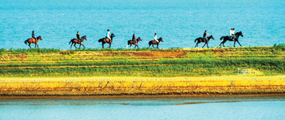 近年来。骑马运动在年轻人中逐渐流行。图为近日,一群年轻人在湖北省十堰市郧阳区江边纵马奔驰、锻炼身体。