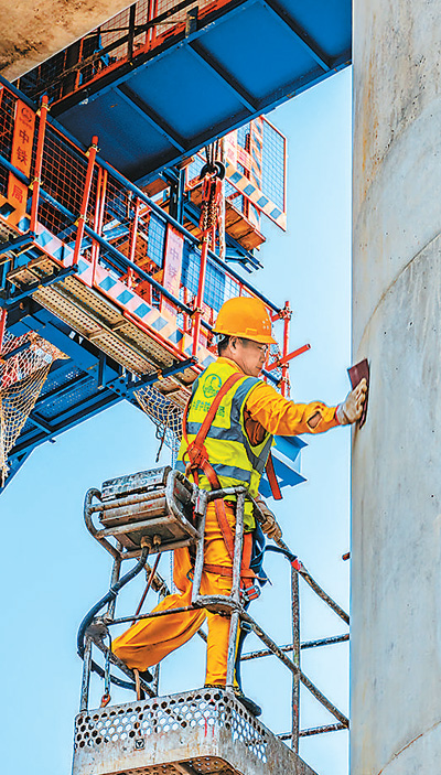 湖南省永州市东安县芦洪市镇,邵永高铁东安段柘刺坪特大桥建设工地,工人在紧张有序施工。