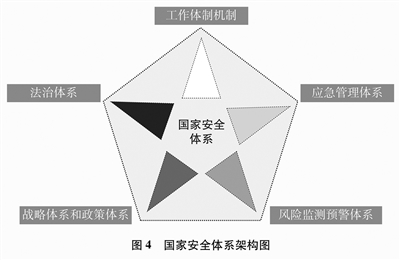 ——完善布局。从国家安全体系、公共安全治理机制、社会治理体系、涉外国家安全机制等四个方面进行统一布局,贯通国家安全和社会稳定、国内和国际、顶层和基层、传统安全和非传统安全,实现国家安全全覆盖。