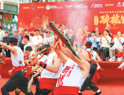 图为“鱼行醉龙节”巡游队伍在活动中表演。