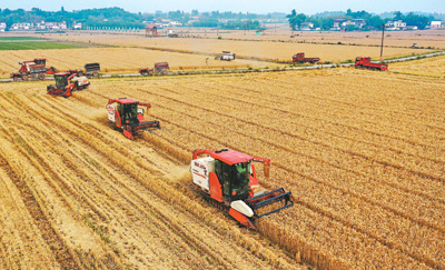 目前,四川省眉山市仁寿县的小麦正值收获季,江苏、河南、安徽等地不少“麦客”前来帮助当地农民及时抢收小麦,确保颗粒归仓。图为5月18日,在仁寿县珠嘉镇棚村村,来自江苏的农机手驾驶收割机收获小麦。
