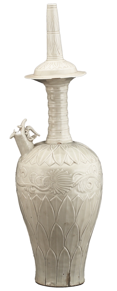 定窑是宋代五大名窑之一,创烧于隋唐,至北宋达到高峰,终于元,历时700余年。定瓷以“白如玉,薄如纸,声如磬”为主要特点,采用刻花、划花、印花、镂雕、压棱等装饰技法。